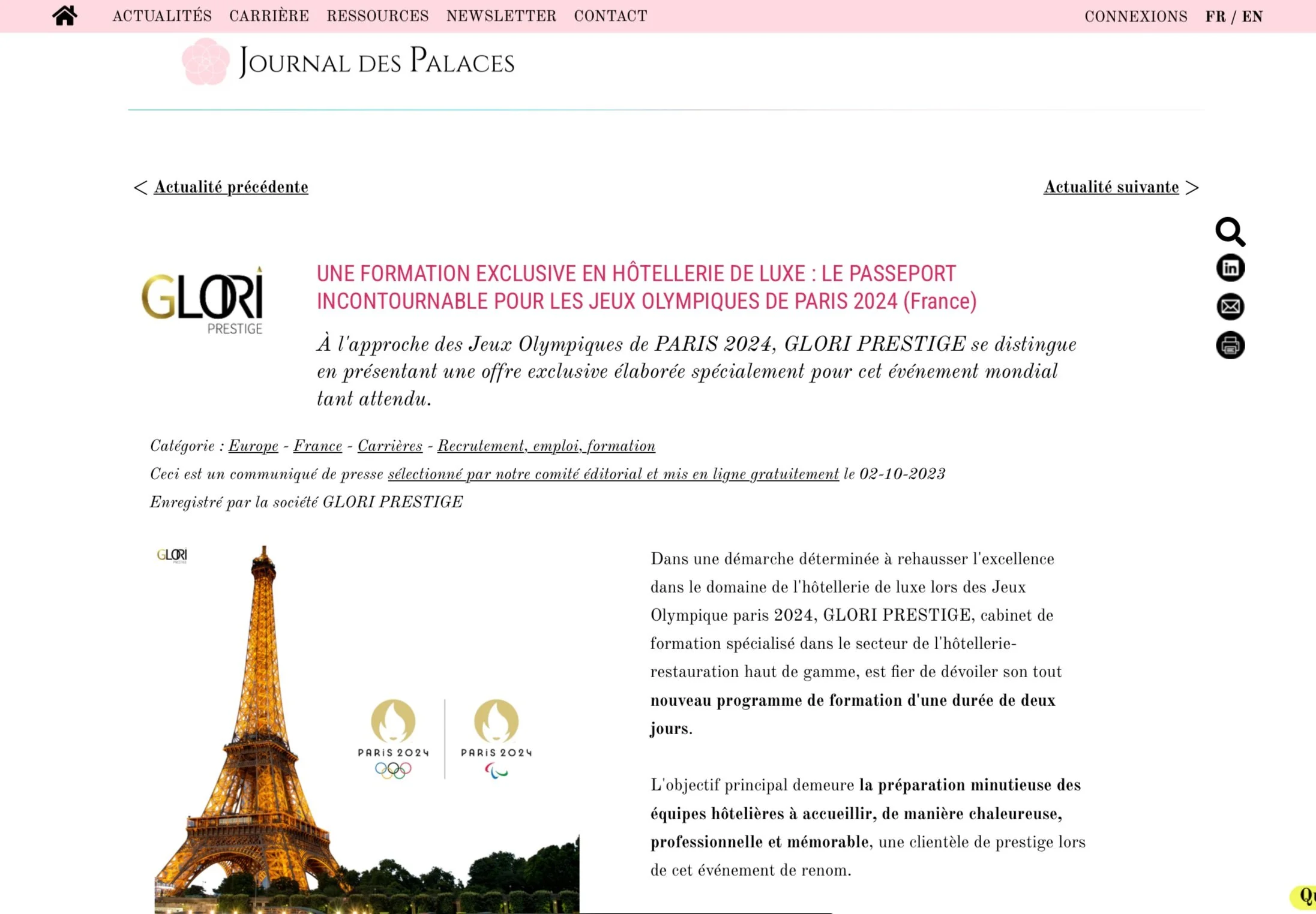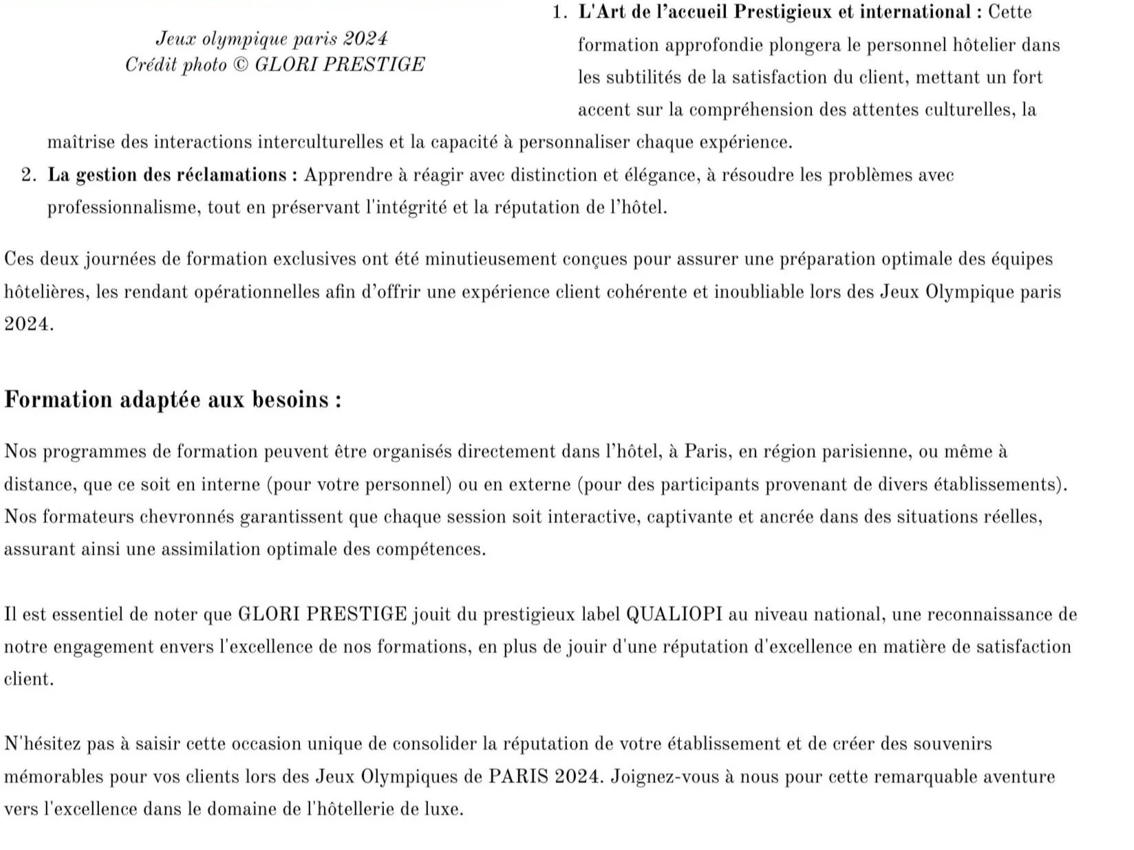“ Ensemble, faisons des Jeux Olympique de PARIS 2024 un moment de distinction et d’excellence pour votre hotel”